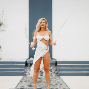 Costumul de baie Afrodita e mai mult decât o piesă vestimentară: e o declarație. Parte din colecția premium, acest set format din 3 piese îți conturează silueta, accentuează talia și îți oferă acel mix rar de senzualitate și rafinament. Bijuteria centrală în formă de scoică aurie in combinatie cu accesoriile aduce un aer grecesc, în timp ce decupajele sunt gândite să avantajeze orice formă de corp.