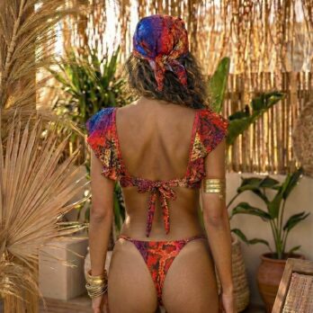 Descoperă piesa de rezistență a colecției, acest set premium din 3 piese (Top + Bikini + Eșarfă) este definiția luxului exotic. Printul în culori neon-vibrante arată incredibil pe pielea bronzată, iar croiala este gândită să întoarcă toate capetele.